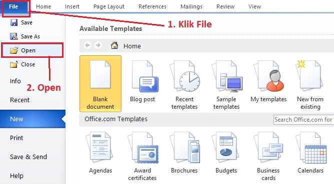 Untuk membuka dokumen dalam cara menggunakan Microsoft Word 2010, yaitu;