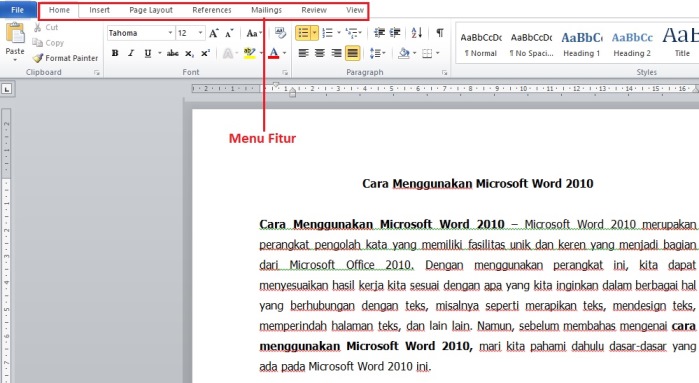 Sama seperti Microsoft word 2007, pada Microsoft Word 2010 terdiri dari beberapa menu tab, yaitu;